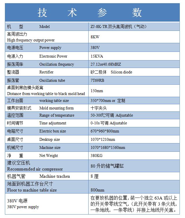 金條包裝雙頭高周波機符合歐洲第4代環(huán)保標準,主要用于各種LOGO壓印,PVC袋子封口,環(huán)保材料封口切邊,以及測血壓袋,血袋,尿袋,引流袋等等醫(yī)療袋子封口切邊。