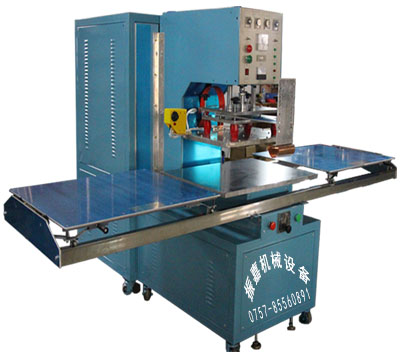本機(jī)主要采用高頻機(jī)、高周波工作原理,利用高壓變壓器整流自激高頻電子管振蕩瞬間產(chǎn)生高頻電磁波電流電場(chǎng),利用被加工的PVC、TPU、EVA、PETG等材料在高頻電磁波電場(chǎng)內(nèi)其塑膠、塑料材料的內(nèi)部分子產(chǎn)生極性化導(dǎo)熱,加上一定的壓力使所需要熱合焊接的塑料、塑膠產(chǎn)品達(dá)到熔接封口作用。